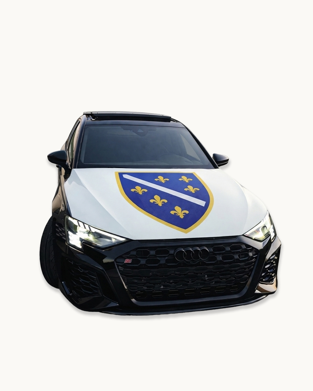 Zastava za haubu od elastičnog poliestera – univerzalne veličine, prilagodljiva različitim modelima automobila.